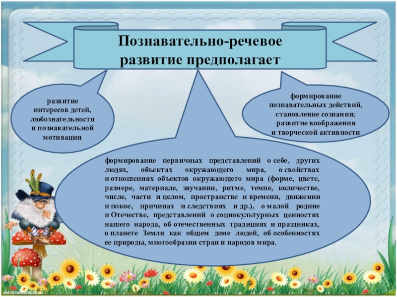 формирование познавательных действий, становление сознания; развитие воображения и творческой активности