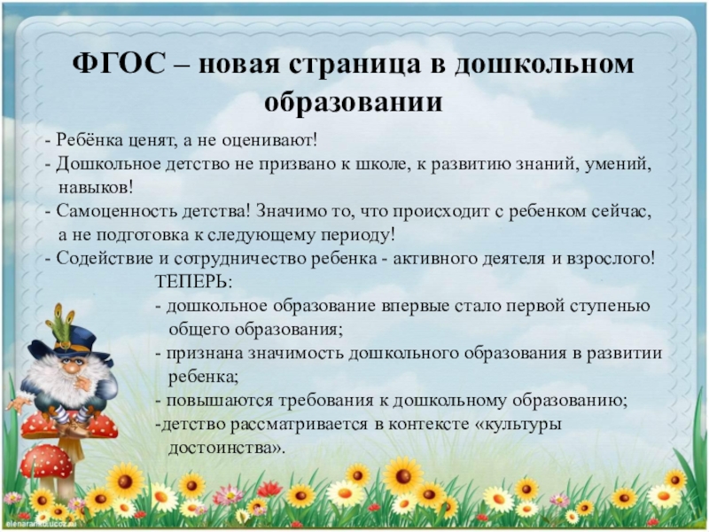 - Самоценность детства! Значимо то, что происходит с ребенком сейчас, а не подготовка к следующему периоду!