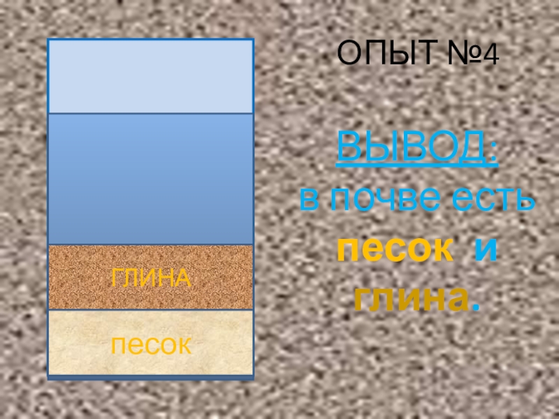 ОПЫТ №4ВЫВОД:в почве есть песок и глина.ГЛИНАпесок