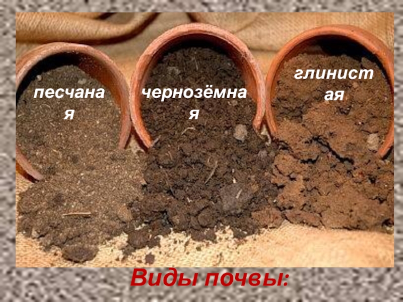 песчанаячернозёмнаяглинистаяВиды почвы: