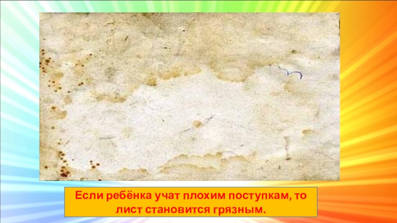 Слайд 8Если ребёнка учат плохим поступкам, то лист становится грязным.