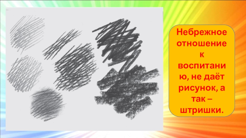 Слайд 9Небрежное отношение к воспитанию, не даёт рисунок, а так – штришки.