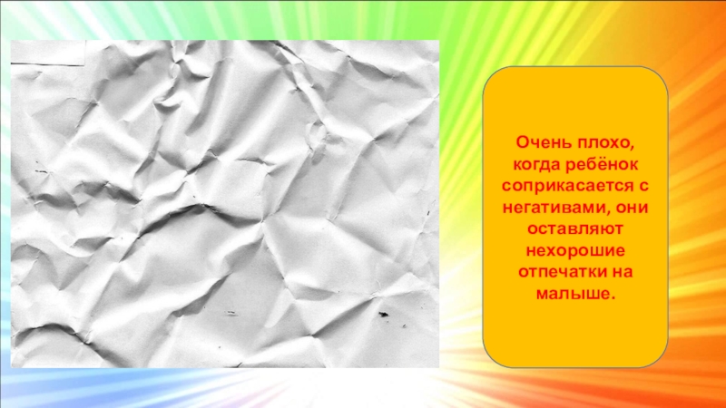 Слайд 6Очень плохо, когда ребёнок соприкасается с негативами, они оставляют нехорошие отпечатки