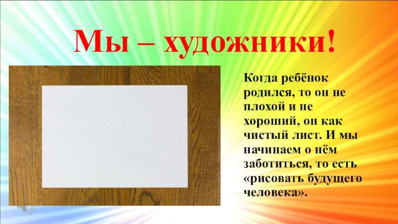 Мы – художники!Когда ребёнок родился, то он не плохой и не хороший, он как чистый лист. И