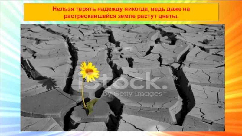 Слайд 14Нельзя терять надежду никогда, ведь даже на растрескавшейся земле растут цветы.