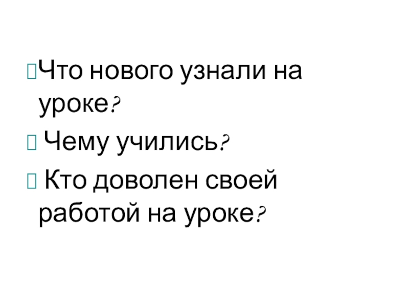 Что нового узнали на уроке? Чему учились? Кто доволен своей работой на уроке?
