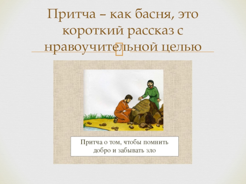 Слайд 2Притча – как басня, это короткий рассказ с нравоучительной целью