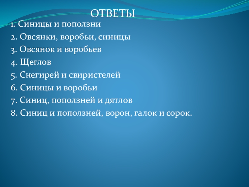 8. Синиц и поползней, ворон, галок и сорок.