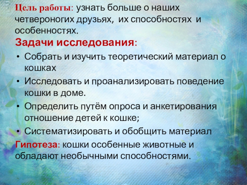 Гипотеза: кошки особенные животные и обладают необычными способностями.