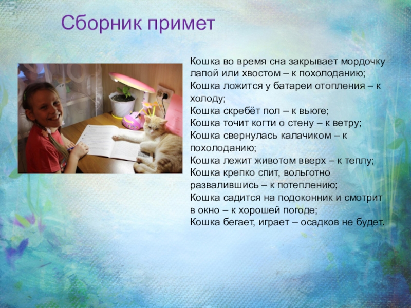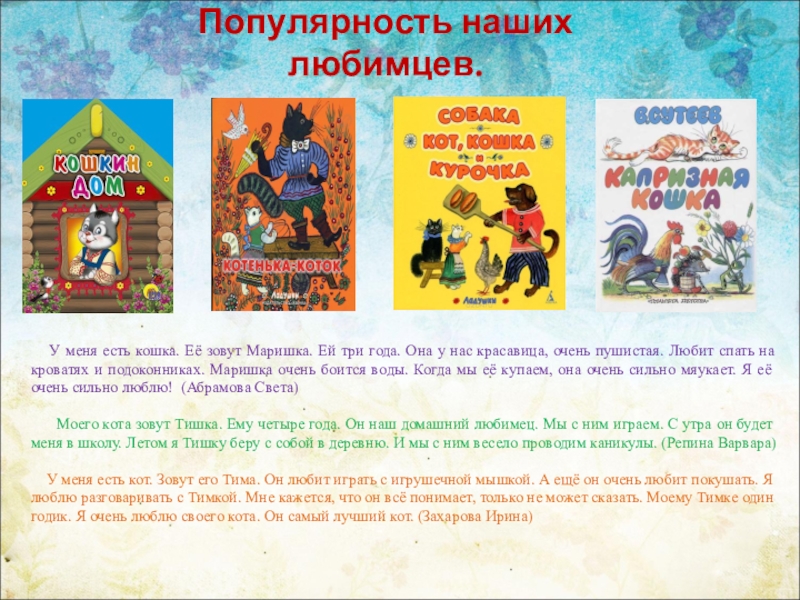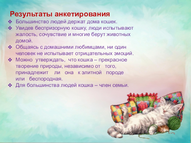 Определить путём опроса и анкетирования отношение детей к кошке;