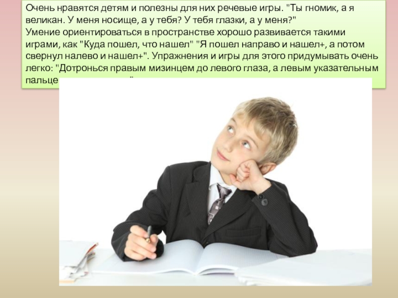 изучение букв и цифр, геометрических фигур и цветов, понятий право/лево, большой/маленький, широкий/узкий и т.д.;
