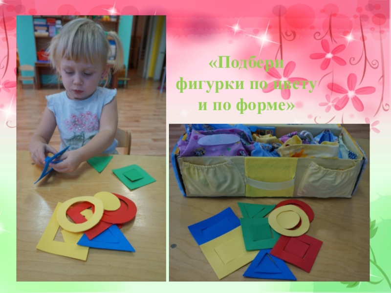 Слайд 9«Подбери фигурки по цвету и по форме»