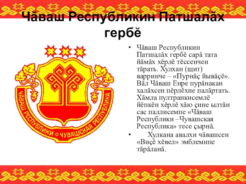 Слайд 9Чăваш Республикин Патшалăх гербĕ