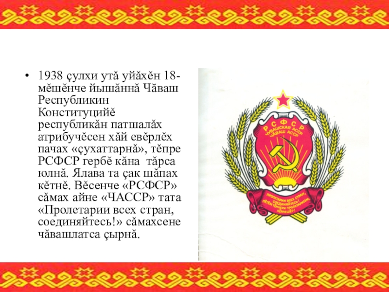 Слайд 61938 çулхи утǎ уйǎхěн 18-мěшěнче йышǎннǎ Чăваш Республикин Конституцийě республикǎн патшалǎх
