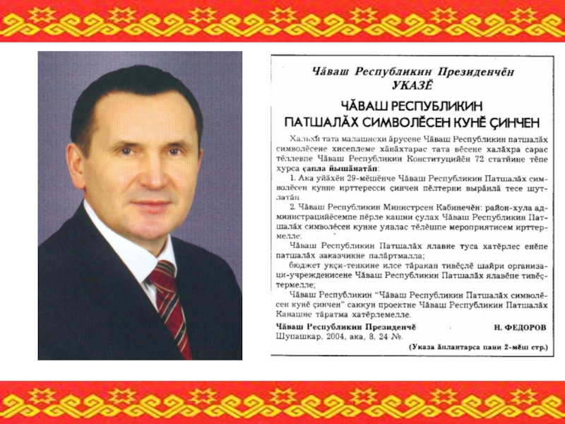 Слайд 7Чăваш Республикин Аслă Канашĕ сĕннипе 1992 çулхи ака уйăхĕн 29-мĕшĕнче Чăваш