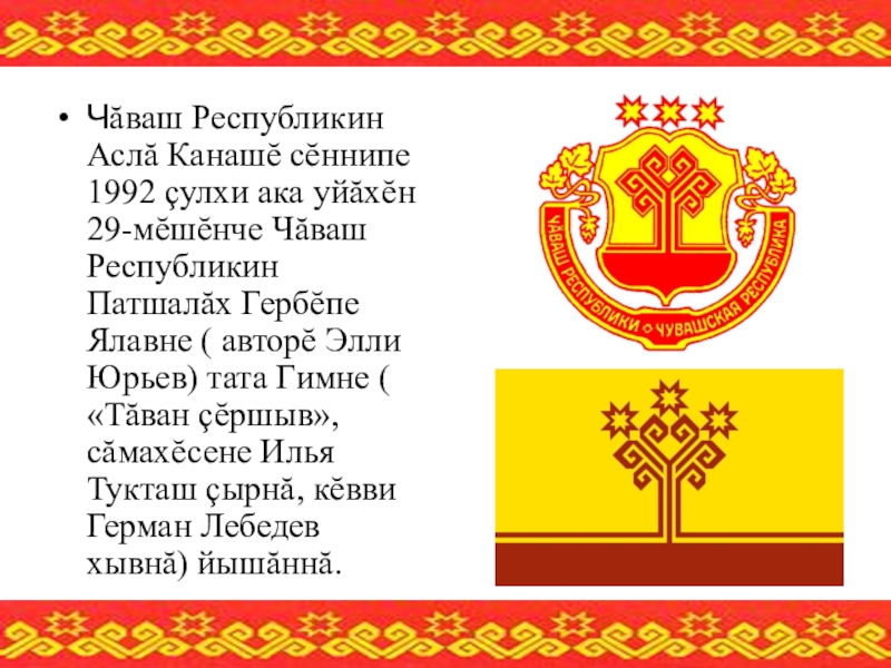 Слайд 2Чăваш Республикин Патшалăх символěсем