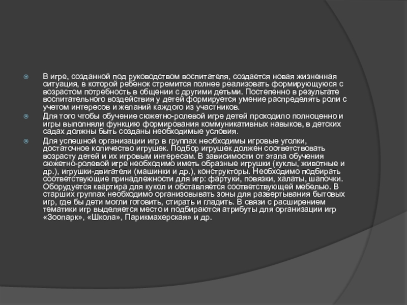 Слайд 6В игре, созданной под руководством воспитателя, создается новая жизненная ситуация, в