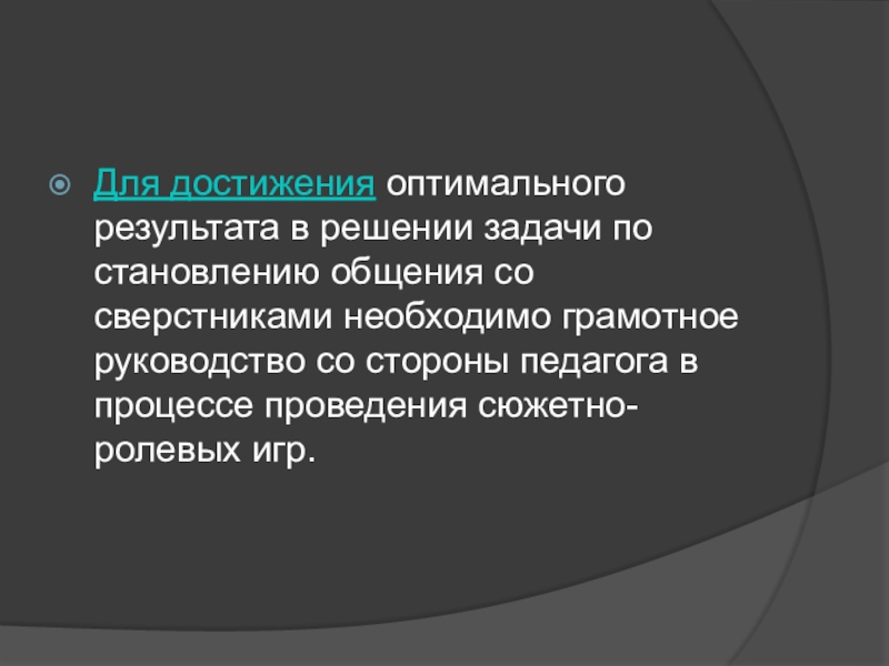 Слайд 4Для достижения оптимального результата в решении задачи по становлению общения со сверстниками