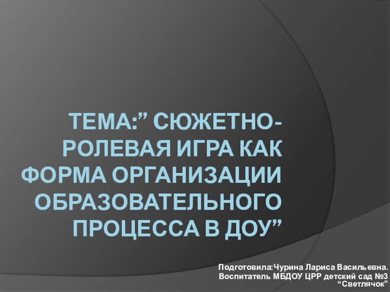 Слайд 1Тема:” Cюжетно- ролевая игра как форма организации образовательного процесса в ДОУ”
