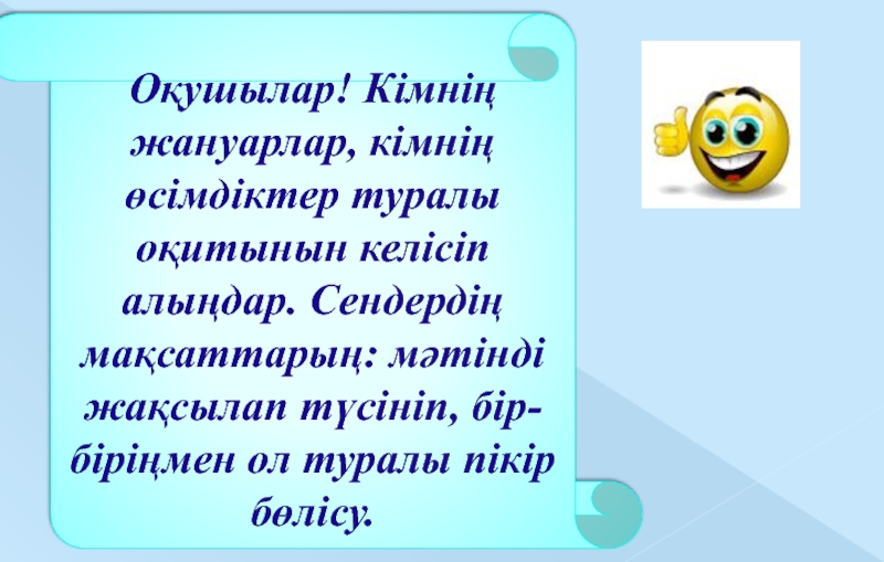 Оқушылар дала өсімдіктері және жануарларын танып біледі, табиғатты қорғауға бағытталады, білімдерін дәлелдеуге үйренеді