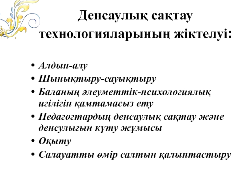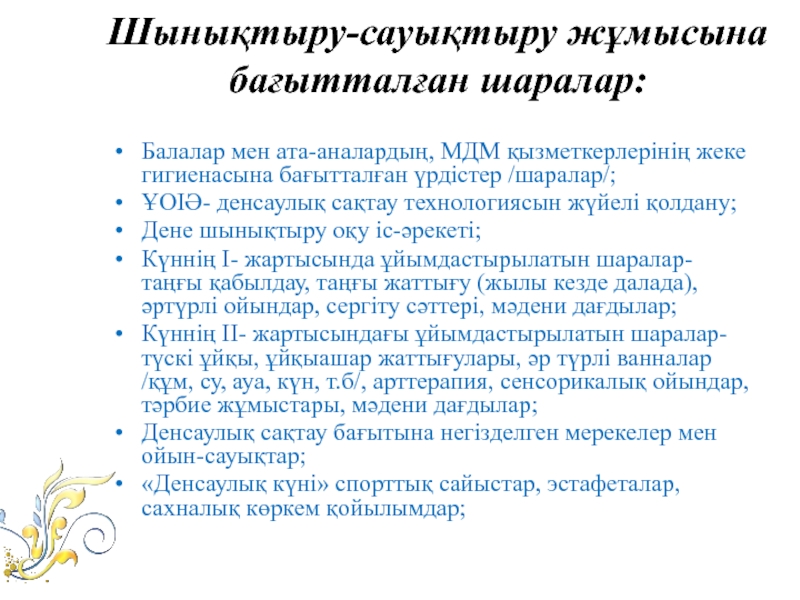 Шынықтыру-сауықтыру жұмысына бағытталған шаралар: