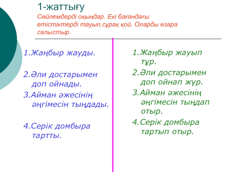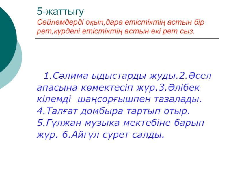 1.Сәлима ыдыстарды жуды.2.Әсел