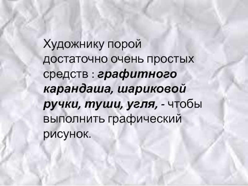Художнику порой достаточно очень простых средств : графитного карандаша, шариковой ручки, туши, угля, -
