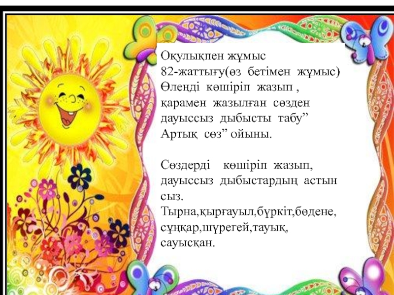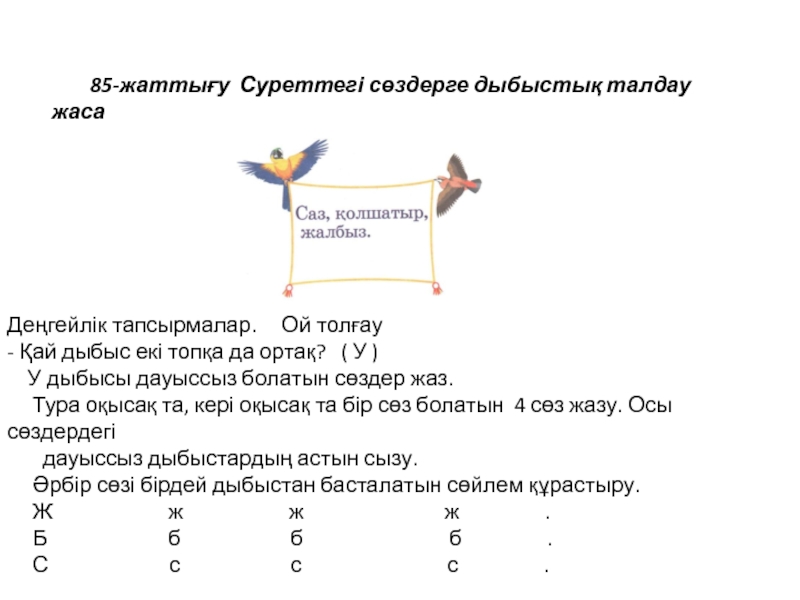 Құрастырылған сөздерден дауыссыз дыбыстарды тауып, оларды үшке бөліп жазу:
