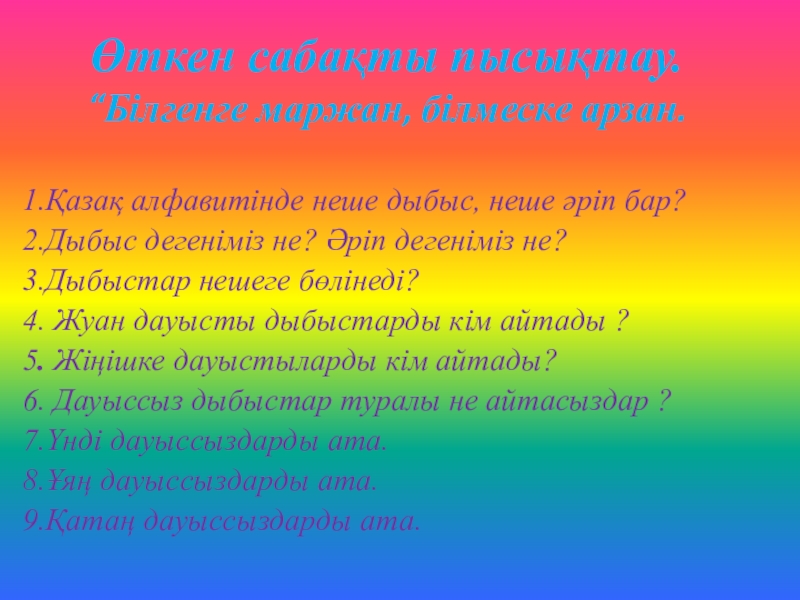 б, в, г, ғ, ж, д, з.