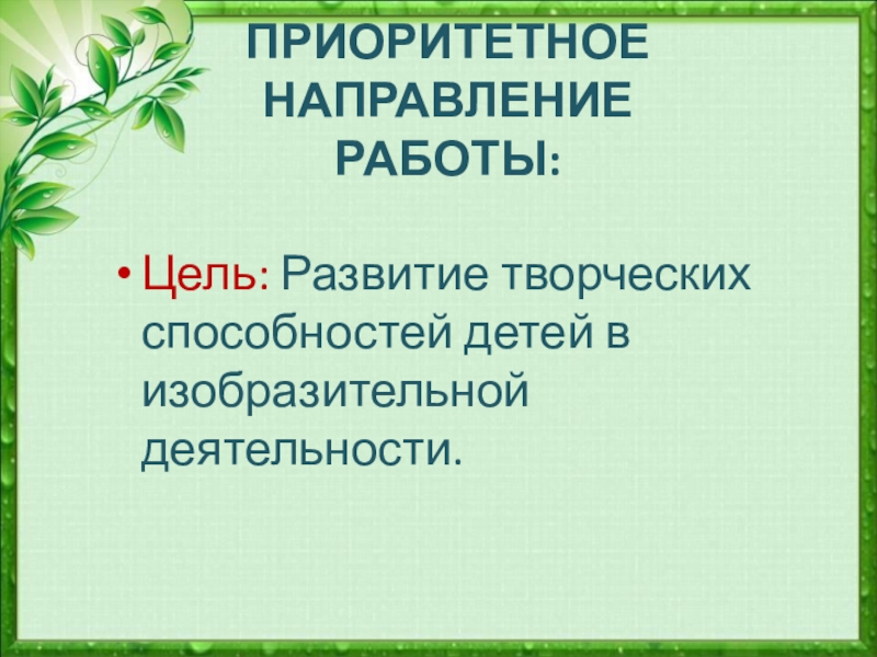 Цель: Развитие творческих способностей детей в изобразительной деятельности.