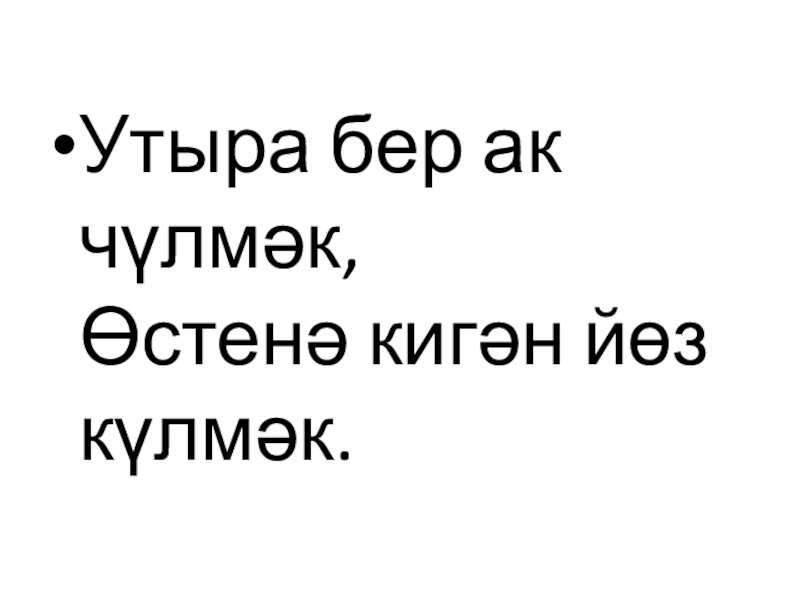 Слайд 8Утыра бер ак чүлмәк,  Өстенә кигән йөз күлмәк.