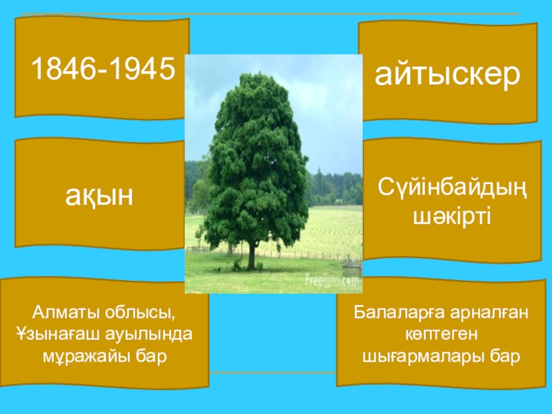 1846-1945айтыскерАлматы облысы, Ұзынағаш ауылында мұражайы барақынСүйінбайдың шәкіртіБалаларға арналған көптеген шығармалары бар