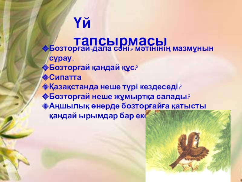 -Бүршіктен басқа көктемде оянатын қандай тіршілік иелерін атар едім.