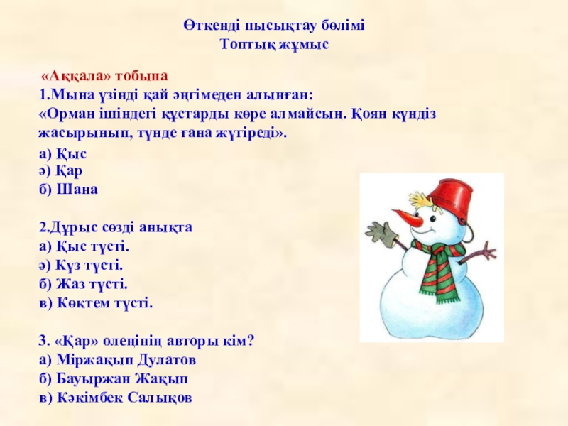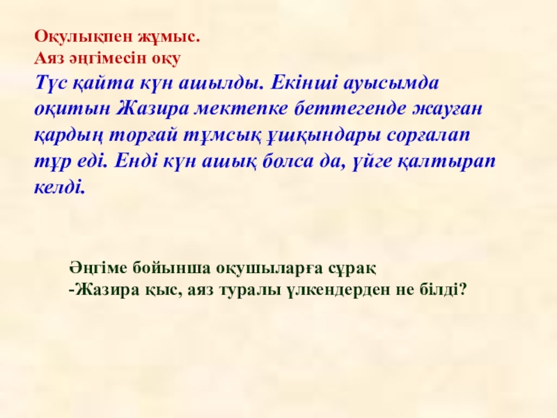 Әңгіме бойынша оқушыларға сұрақ