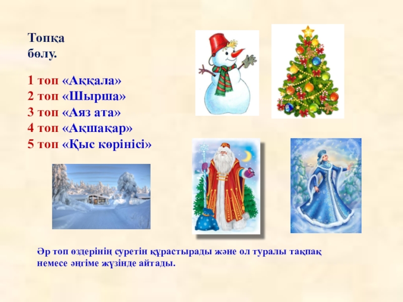 Әр топ өздерінің суретін құрастырады және ол туралы тақпақ немесе әңгіме жүзінде айтады.