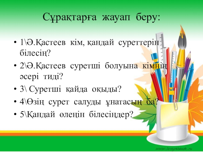 2\Ә.Қастеев суретші болуына кімнің әсері
