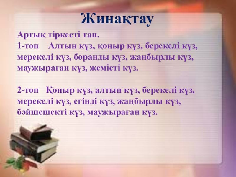 Үйге тапсырма: