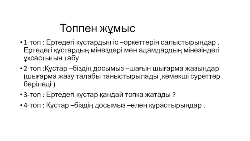 3. Мәтін арқылы құстар өміріне зерртеу жасау ,табиғатты тани білуге ұмтылу