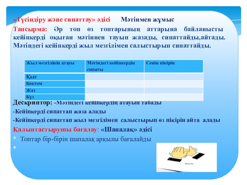 «ТҮСІНДІРУ ЖӘНЕ СИПАТТАУ » әдісі
