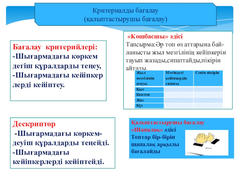 2.Шығарма мазмұнын мазмұндай білу,жыл мезгілдерін ажырату.