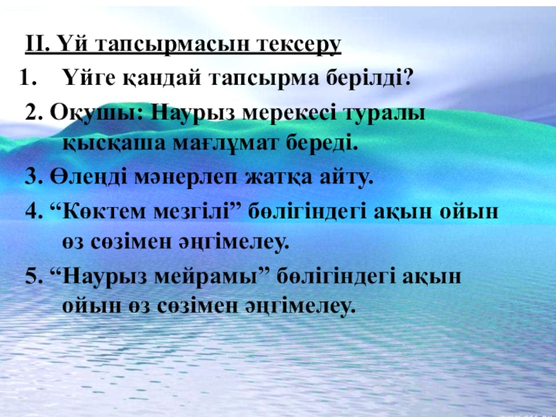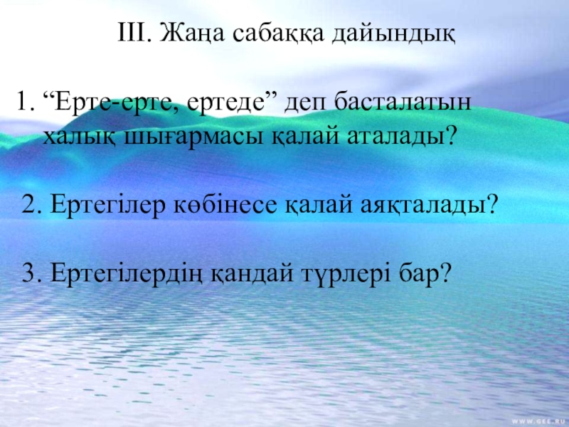 Сабақтың барысы: