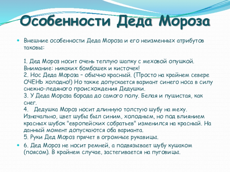 Слайд 16Особенности Деда Мороза