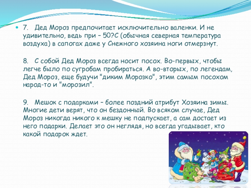 Слайд 177. Дед Мороз предпочитает исключительно валенки. И не удивительно, ведь