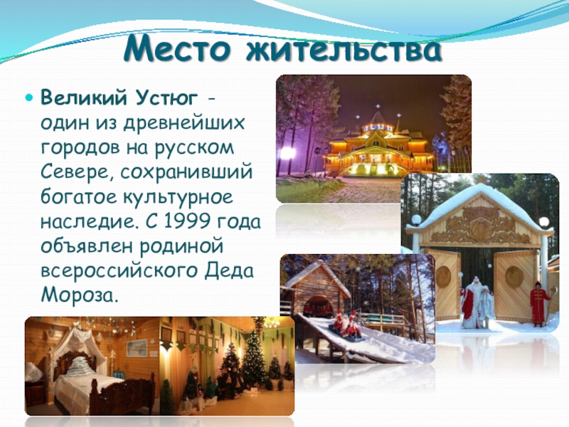 Севере, сохранивший богатое культурное наследие. С 1999 года объявлен родиной всероссийского Деда Мороза.