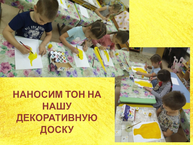Слайд 3НАНОСИМ ТОН НА НАШУ ДЕКОРАТИВНУЮ ДОСКУ