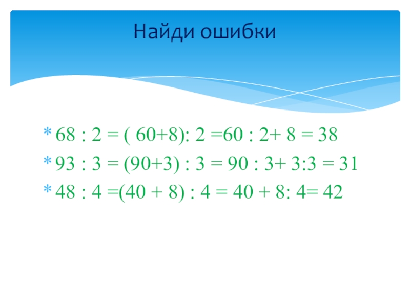 98 : 7 = ( 70 + 28): 7 = 70 :7+ 28: 7 = 10 + 4 =14