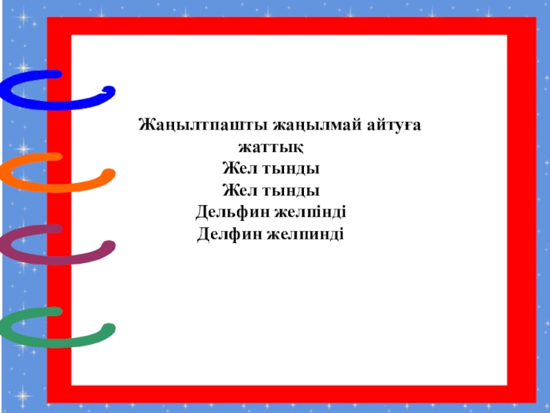 Жаңылтпашты жаңылмай айтуға жаттықЖел тындыЖел тындыДельфин желпіндіДелфин желпинді