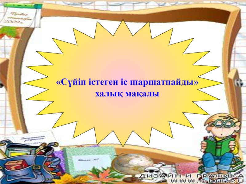 Дайынсың ба сабаққа? Қарап алшы жан-жаққа Бәрі бар ма орнында? Қалам, дәптер, кітап та.