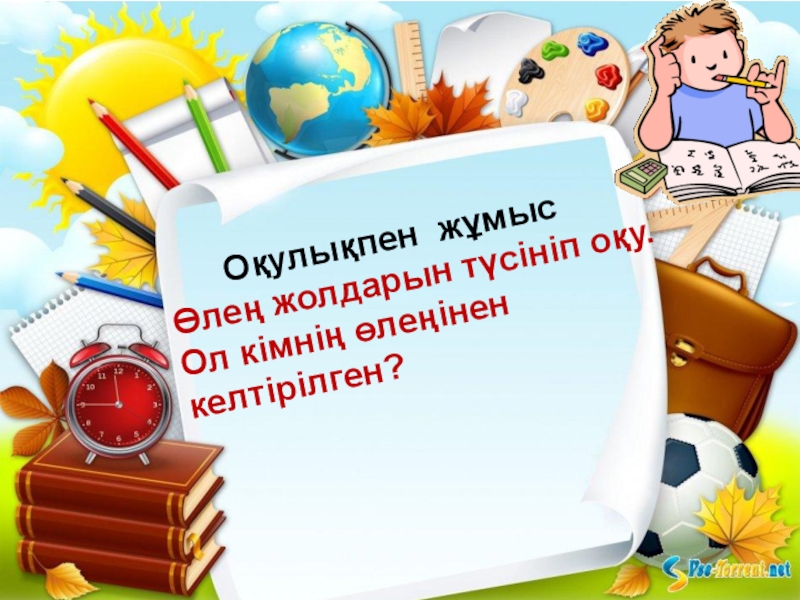 Оқулықпен жұмысӨлең жолдарын түсініп оқу.Ол кімнің өлеңінен келтірілген?