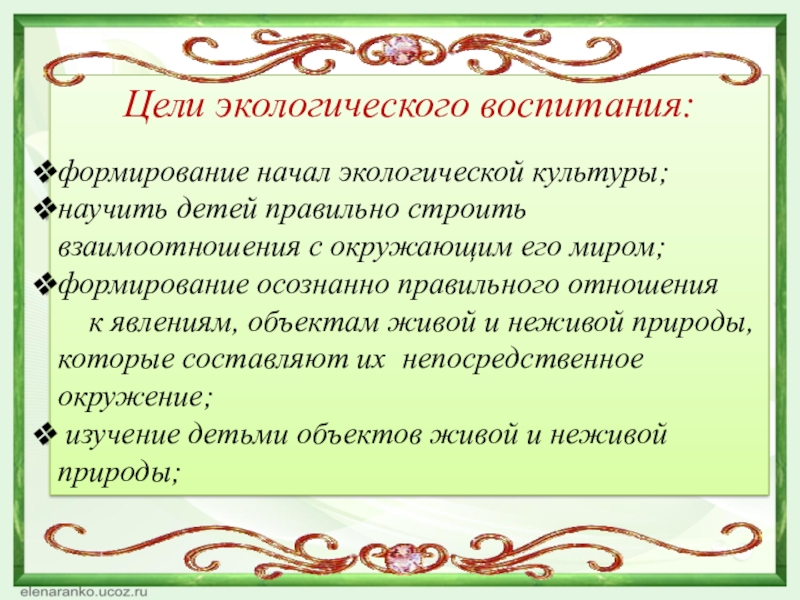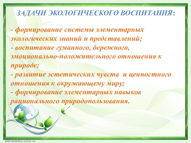 Задачи экологического воспитания: